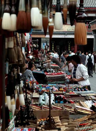 潘家园旧货市场经营的商品主要有五大类:字画、陶瓷、青铜器、金银珠宝器、竹木牙骨器等。这些真真假假的古玩商品,流通渠道主要是由两类人的经营活动构成。一类相当于批发商,道上人称“大爷”,这些人是中国古玩市场的源头和始作俑者。他们之中的大多数不会在市场上公开露面,基本上是一些见不得阳光的盗墓贼或文物制假者。这部分人行踪诡秘,风险性大,但在艺术品市场流通链上,与那些直接进市场经营买卖的下线比,他们的经济收入却显得偏低。