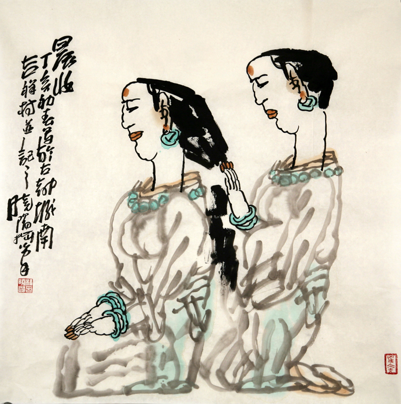 《告别过去》画册中最后的“写意篇”,收录了《仕女》 、 《春韵》 、 《酒逢知己》 、 《怀素书蕉》 、 《草原之夜》等水墨写意人物小品,大多作于20世纪90年代中后期和21世纪初年。这些作品虽然不像画家的主题画和壁画那样引人注目,但已经孕育着他后来全力以赴创作的大写意水墨人物画的雏形。
