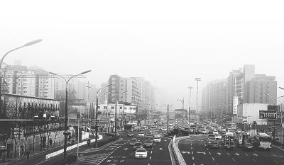2月20日,北京市首次发布空气污染黄色预警,图为当日雾霾中的北京城区。本报记者 郭俊锋摄