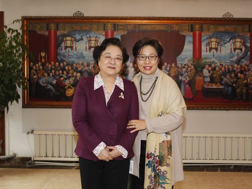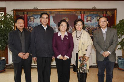 2月18日,全国政协副主席、台盟中央主席林文漪会见台湾功文文教基金会董事长赵文瑜一行。图为林文漪主席与赵文瑜女士合影。