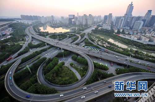 资料图片:广西南宁中心路段之一的竹溪立交桥(2013年12月1日摄)。 新华社记者梁强摄