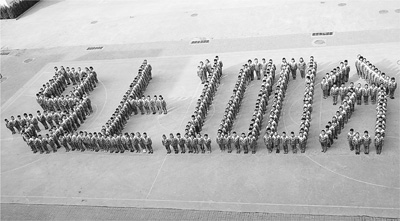 日前 ,河北省邯郸市丛台小学返校的同学们在操场上拼成巨型“马上100分”字样,迎接新学期。