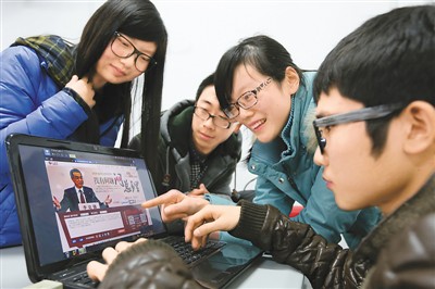 2月27日,江苏大学学生通过人民网两会“我有问题问总理”平台发表提问。新华社发