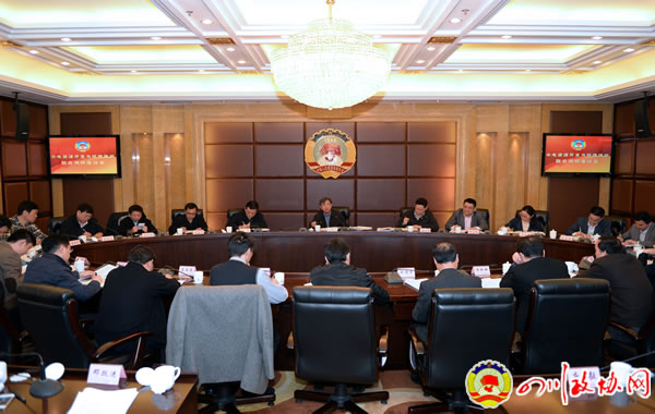 四川省政协和致公党中央联合调研水电开发和环境保护,图为调研之前和四川省直部门的座谈会。