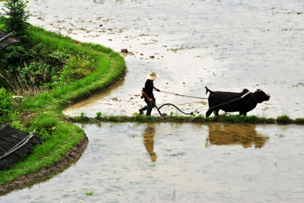 5月5日,贵州省锦屏县固本乡东庄村农民在耕田。