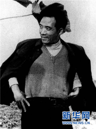 焦裕禄在泡桐前的留影(资料照片)。 新华社发(刘俊生 摄)