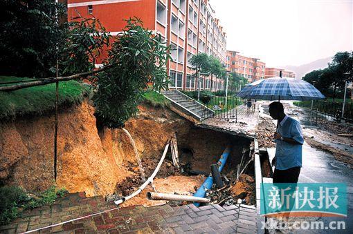 ■从化中山大学南方学院山泥倾泻,校内地陷坍塌。