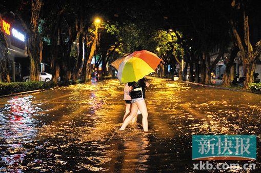 新快报讯昨天上午8时许,位于从化温泉镇的中大南方学院开始下起了大暴雨,上午11时许,校园内一些地势较低的地方积水漫过膝盖,积水又黄又浊,学校部分宿舍与食堂被淹。