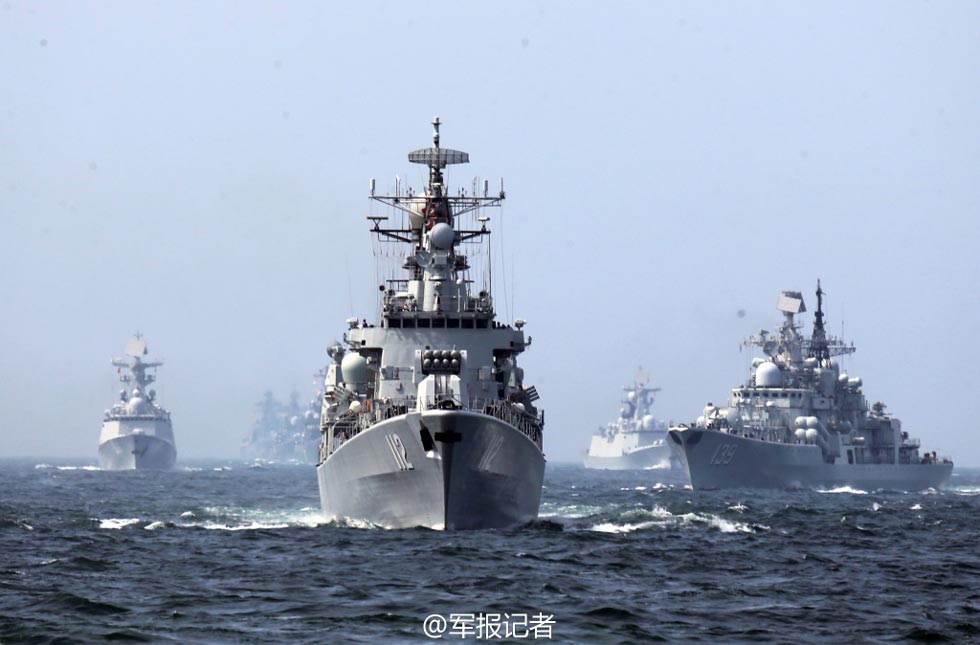 5月24日下午1时许,东海某海域突然间炮声四起,中俄联合编队6艘舰艇进行了对"舰"射击、火箭深弹攻"潜"、对空实射等演练,下午2时50分,随着海上实际使用武器演练结束,历时3天的中俄"海上联合一2014"军事演习海上课目全部完成。