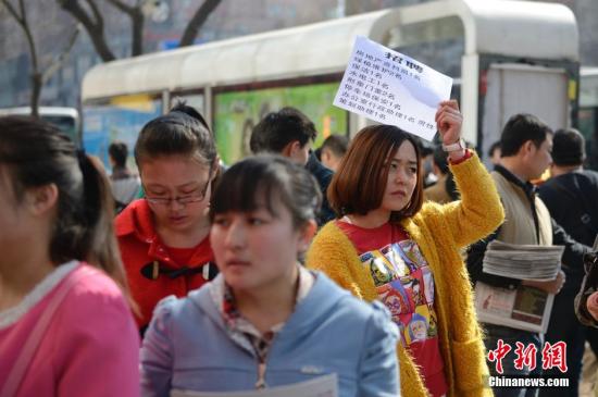 3月22日,一用人单位手拿招聘信息,招聘员工。当日,2014年内蒙古呼和浩特春季人才交流会在呼市人才交流中心举办。预计2014年夏天,全国高校应届毕业生将达727万,“史上更难就业季”即将到来。中新社发 刘文华 摄
