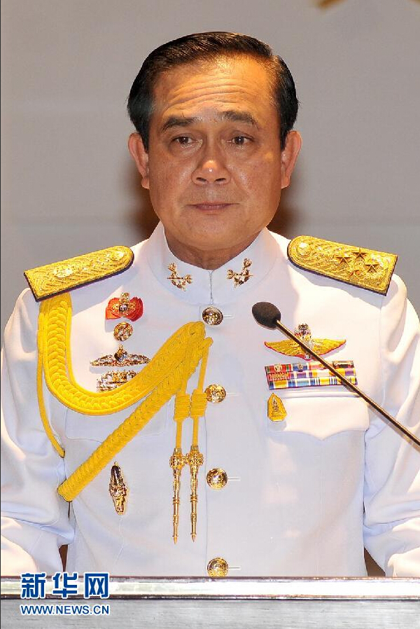 5月26日,在泰国曼谷,泰国陆军司令巴育出席新闻发布会。泰国陆军司令巴育26日接受国王谕令,出任“全国维持和平秩序委员会”(维和委员会)主席。巴育随后承诺国家将产生过渡总理,但拒绝透露具体时间。新华社发(拉亨摄)