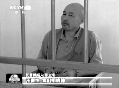 犯罪嫌疑人张立冬接受央视记者采访。视频截图