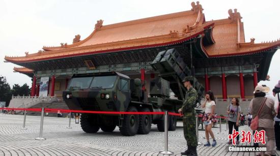 6月7日,“中央军事院校校友总会”、“中华黄埔四海同心会”等台湾退伍军人团体在台北中正文化中心两厅院广场举行“庆祝黄埔建军90周年暨对日抗战77周年纪念活动”。图为台湾军方在活动现场展示爱国者导弹等现役武器装备。中新社发 刘舒凌 摄