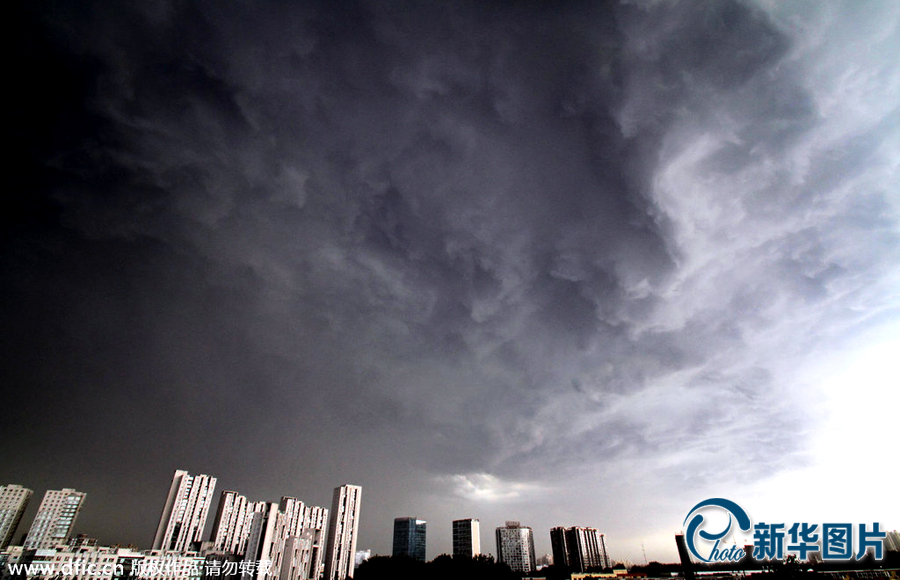 2014年6月8日下午,北京突遭雷雨袭击,白昼如夜。