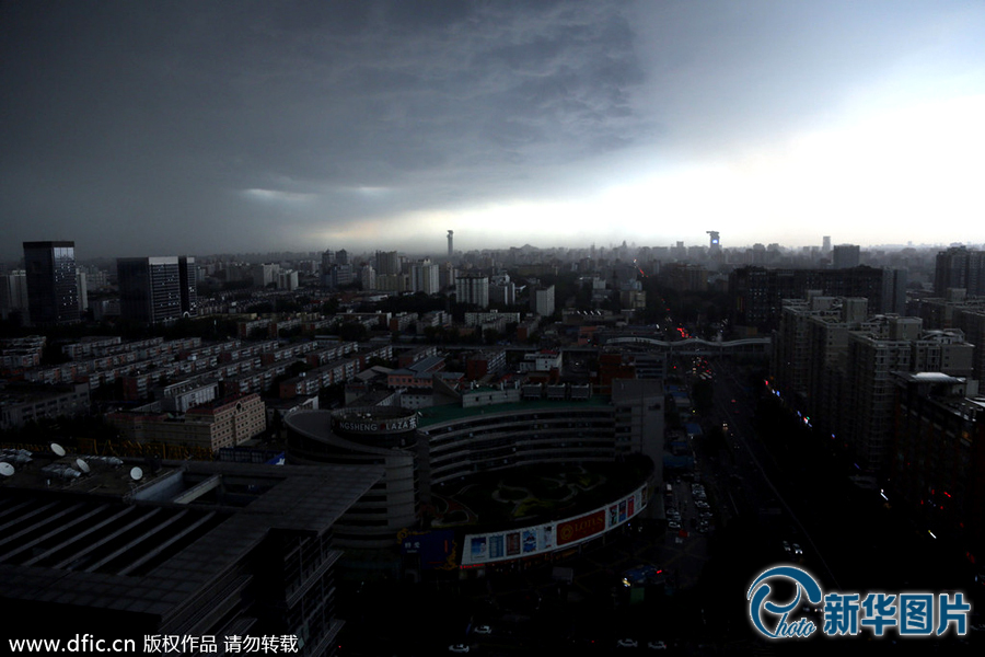 2014年6月8日,北京,北京午后突降暴雨,乌云笼罩北京北部地区,图为午后两点半左右,北京五道口地区远眺整个北部地区。