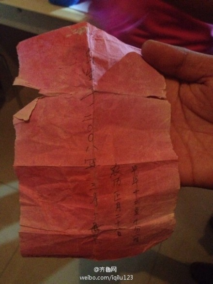 在女孩缝死的裤兜里,记者发现了一张红色纸条,上面竖着三行字,写着女孩的出生日期:出生于2008年3月5号,农历正月二十八日,十二点十分。写错的“号”字被涂花了,又在下方重新写了一遍。