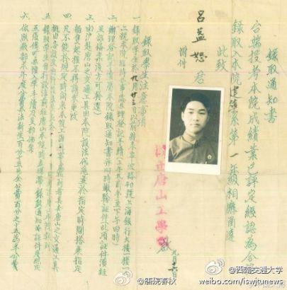 为抢生源西南交大晒61年前学霸女神录取通知书