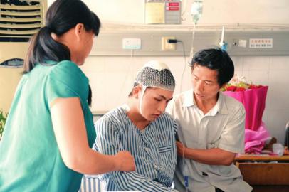 6月7日,柳艳兵的父母在病房照顾他。 新华社发