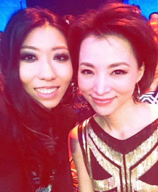 2012年9月12日,央视主持人董卿主持《综艺盛典》,与歌手曲婉婷一起合影自拍。