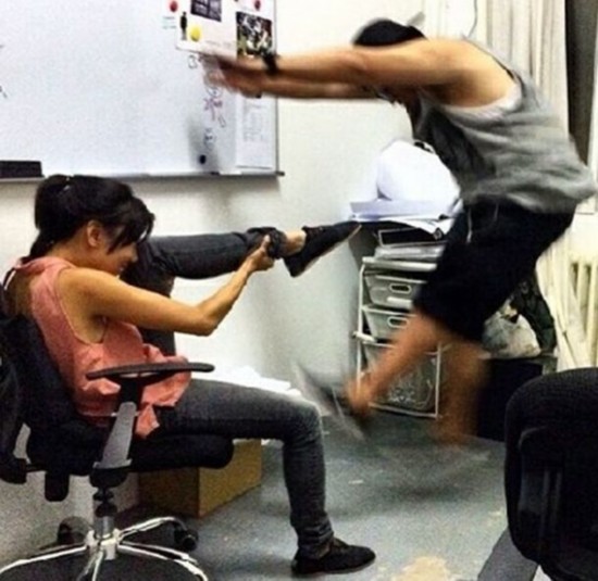 一张娘子军用腿开枪的图片被网友纷纷模仿,很多人觉得这个姿势很酷。
