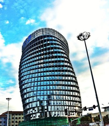 北京市大兴区一建筑外形扭曲被戏称“大肠塔”“呼啦圈”。