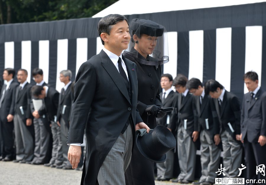 6月17日上午,已故日本桂宫亲王的葬礼在东京都文京区丰岛冈墓地举行,日本皇太子夫妇、秋筱宫夫妇及真子公主出席。图为图为皇太子德仁亲王、皇太子妃雅子在葬礼上。