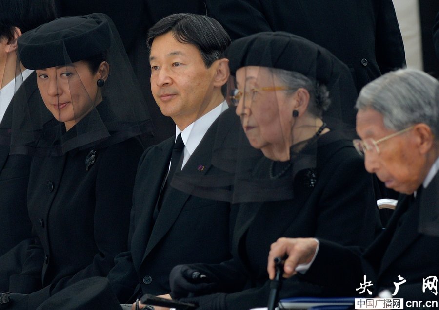 6月17日上午,已故日本桂宫亲王的葬礼在东京都文京区丰岛冈墓地举行,日本皇太子夫妇、秋筱宫夫妇及真子公主出席。图为皇太子德仁亲王、皇太子妃雅子在葬礼上。