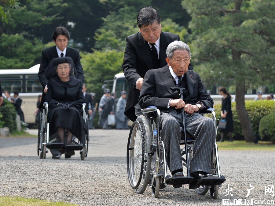6月17日上午,已故日本桂宫亲王的葬礼在东京都文京区丰岛冈墓地举行,日本皇太子夫妇、秋筱宫夫妇及真子公主出席。图为桂宫亲王的父亲三笠宫亲王在葬礼上。