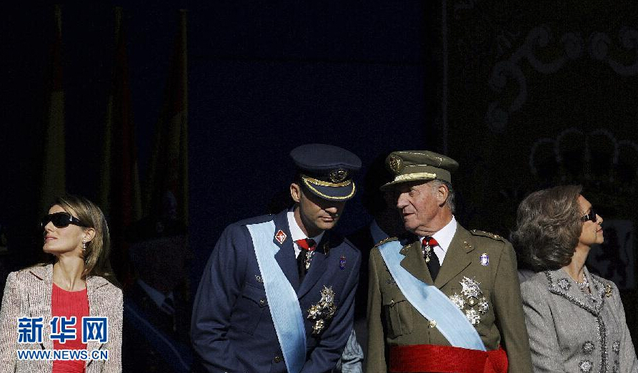 西班牙国王胡安·卡洛斯一世6月2日正式宣布退位。西班牙费利佩王储6月19日加冕为费利佩六世,成为新一位西班牙国王。费利佩王储1968年1月30日出生于马德里,是西班牙国王胡安·卡洛斯一世与王后索菲娅第三个也是最小的孩子。他曾就读于加拿大莱克菲尔德大学,1988年10月至1993年6月在马德里独立大学读书,获法律硕士学位,1993年9月至1995年6月在美国乔治敦大学学习,获国际关系硕士学位。2003年11月1日,费利佩王储和西班牙著名电视节目主持人莱蒂西亚订婚。2004年5月22日,两人喜结连理。目前,两人育有两女。这是西班牙王妃莱蒂西亚、费利佩王储、国王胡安·卡洛斯一世和王后索菲娅(从左至右)出席在马德里举行的阅兵式的资料照片(2006年10月12日摄)。新华社/路透(张帆、程婷婷编辑)