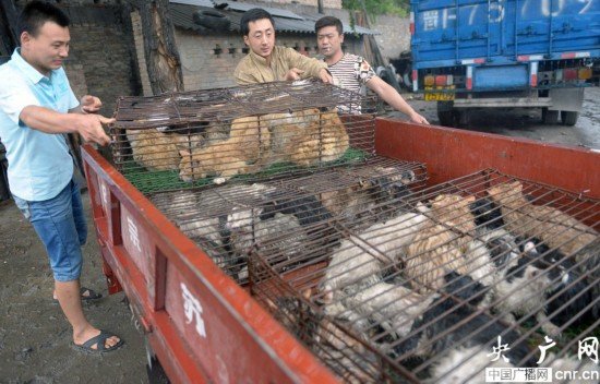 2014年06月19日,在太原市尖草坪区阳曲镇阳曲村附近的一家饭店院内,有一百多只猫被装在铁笼中。