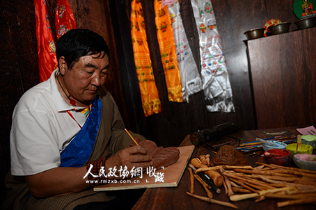 【人民政协网专题报道】“药泥面具里,药的配方不能轻易传授,药方配好了是药,配不好就有毒性。”在北京民族文化宫“全国民族自治州成就展——圣洁甘孜·走进北京·四川甘孜藏区文化旅游宣传周活动上,来自四川甘孜州的国家非物质文化遗产传承人四龙降泽向记者介绍一个正在四龙降泽手下成型的手掌大小的面具说.
