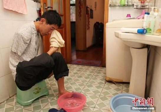 19岁的无臂考生彭超,在高考场上用双脚答题,取得了理科538分的成绩。