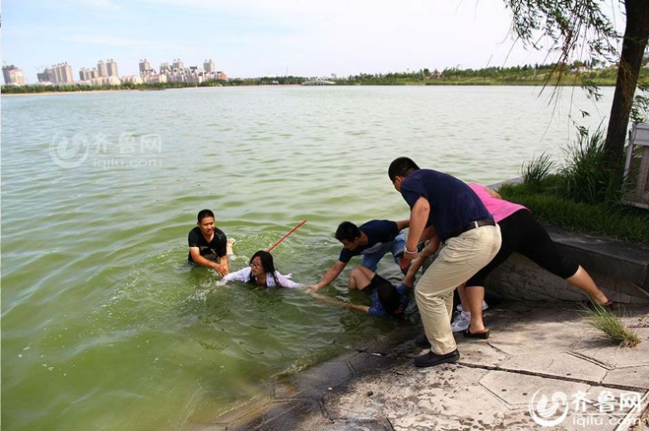 实拍山东东营女孩跳水救人全程 上岸后悄然离去(图)