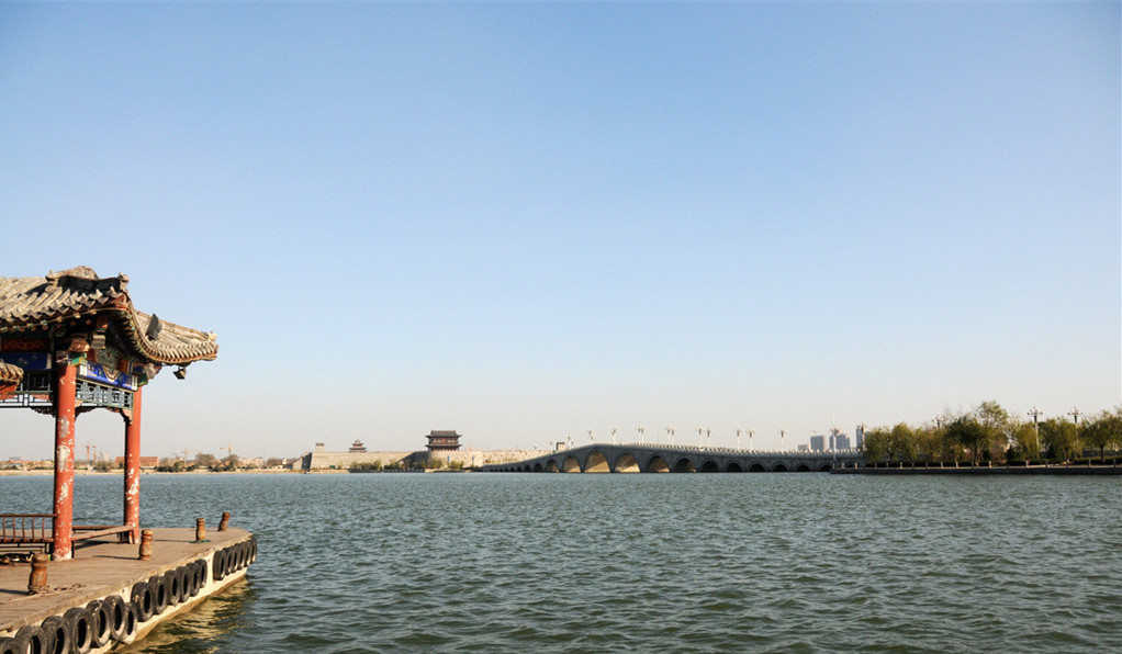 因为京杭大运河山东段是以黄河为界分为南北两段,北段已于20世纪70年代断航,考察团所经之处,尽见干涸的河床,而聊城显然是一个特例。听当地的领导介绍,聊城人非常珍惜这一大盆湖水,并且引以为傲,称自己的城市是“美丽的北方水城”。