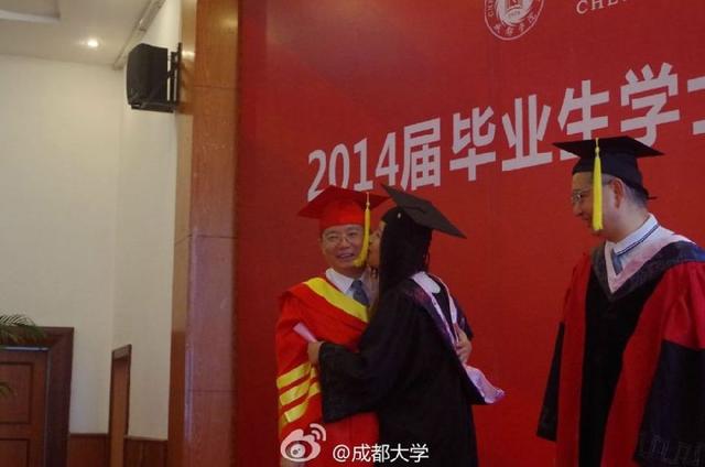 原本严肃的成都大学授位仪式,因为美女毕业生给校长献吻而显得格外轻松。献吻的学生名叫陈巧巧,是成都大学政治学院法学专业的大四毕业生。她说,很幸运亲吻了她心目中的“男神”。成都大学校长王清远说,这是他到成都大学上任后收到的一份特殊礼物,很珍贵。
