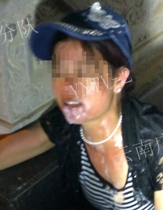 图为喝农药自杀的黑衣女子