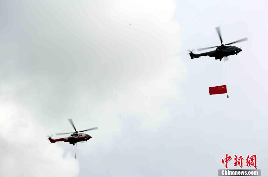 7月1日上午,特区政府的纪律部队会在空中和海上敬礼。当天,香港举行升旗仪式庆祝特区成立17周年。升旗仪式在香港金紫荆广场举行。约二千五百名各界人士出席仪式。中新社发 洪少葵 摄