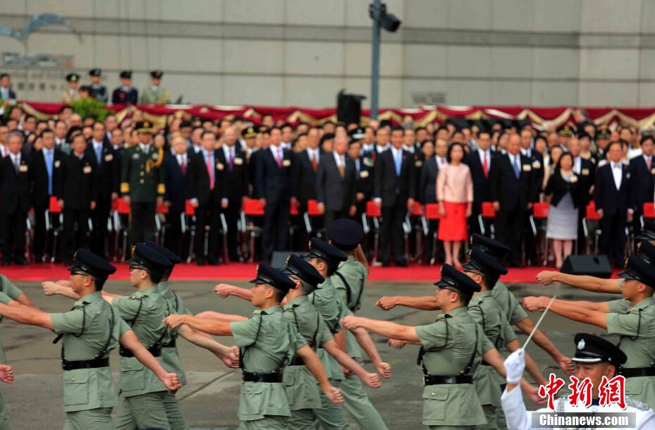 7月1日上午,香港举行升旗仪式庆祝特区成立17周年。升旗仪式在香港金紫荆广场举行。约二千五百名各界人士出席仪式。中新社发 洪少葵 摄