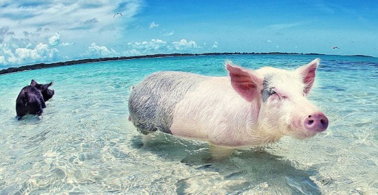 巴哈马“会游泳的猪”蹿红网络。表情很销魂