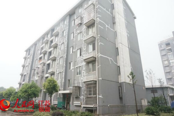 记者现场了解到,宋剑湖家园三期安置房总计12幢房屋,其中有8幢出现外墙大面积裂缝。203幢甲单元5楼住户沈先生说,小区是2012年交付的,2013年开始有住户陆续入住,没过多久就有住户反映房屋渗水,涂这些白色涂料是为了防水,以前也涂过一次,“涂的密密麻麻,房屋质量让人担忧”。