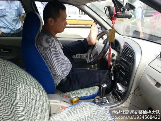 2日下午1时许,民警在沪渝高速仙桃站开展“酒驾”集中整治,一黑色轿车避开民警变到最边道领卡,民警觉得有蹊跷,赶过去检查,发现惊人一幕,司机居然两袖空空没有手臂,用左脚的大脚趾及二脚趾控制方向盘。民警马上让其下车,司机熟练的用右脚将档位推入空档,并用脚将车钥匙熄火。(图片来自网络)