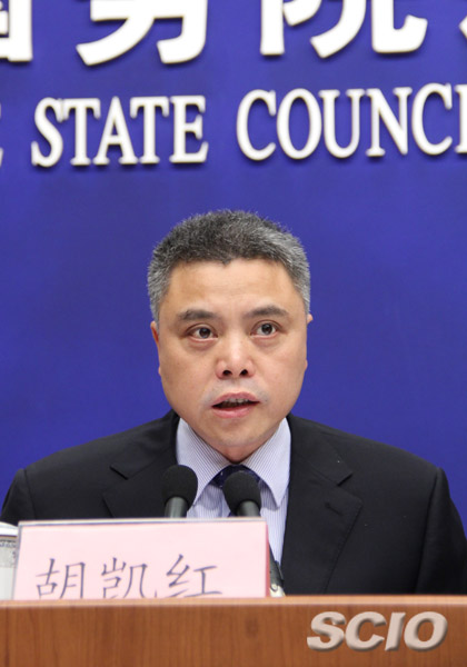 一局副局长胡凯红主持本次新闻发布会(郭研摄影)