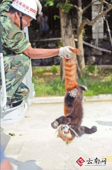 关键词:小熊猫“越狱” 民警消防联合营救