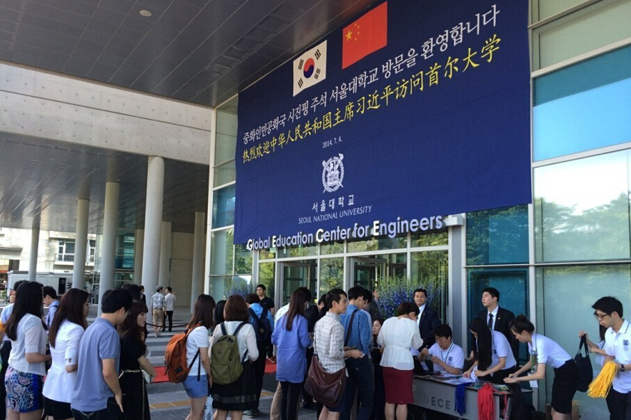 正在韩国进行国事访问的中国国家主席习近平将于今天上午访问首尔大学并发表演讲。一大早,发表演讲的会场外就聚集了大批前来出席演讲的师生代表及韩国各界人士。