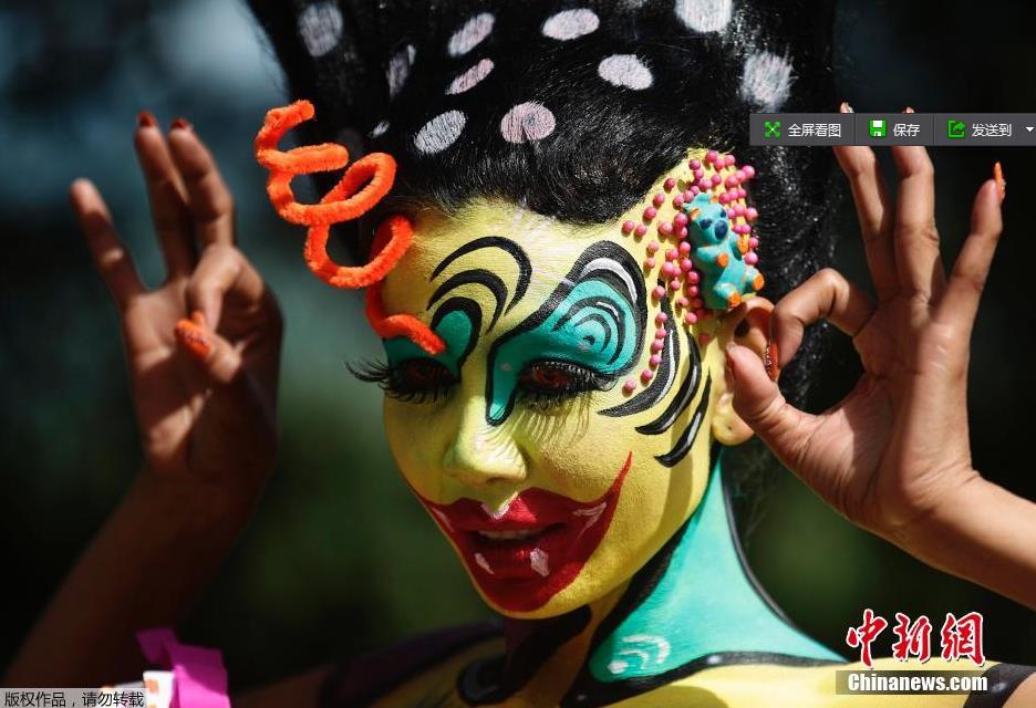 2014年7月4日,年度世界人体彩绘节在奥地利南部的卡林西亚省举行,众多美模展示身体上绘制的各种创意图案。