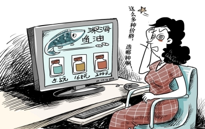 京华时报漫画谢瑶 一粒粒金黄透亮的鱼油胶囊,常被当做送礼或孝敬父母的高档补品。不过,记者近日走访鱼油市场却发现,有些每瓶100粒的鱼油才卖5至30多元,而有些鱼油100粒装的价格卖到100至300多元。专家表示,鱼油类保健食品市场鱼龙混杂,产品不规范甚至造假现象较为严重。