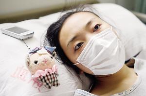 病床上,朱飞燕让心爱的卡通布娃娃陪伴自己。(资料图片)