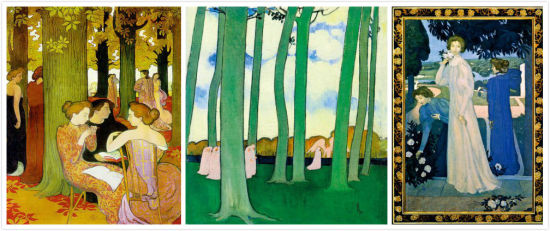 莫里斯·德尼的《缪斯们》(1893)、《绿树林》(1893)和《伊沃娜·勒罗尔的三种肖像》(1897),奥塞博物馆收藏