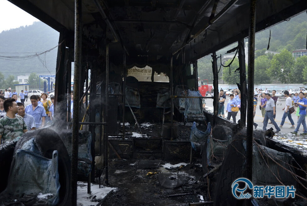 2014年07月10日,湖北十堰举行公交车突发火灾事故应急演练。演练中公交车短短几分钟烧成了一副骨架,显示了突发火灾时大火的残酷无情。