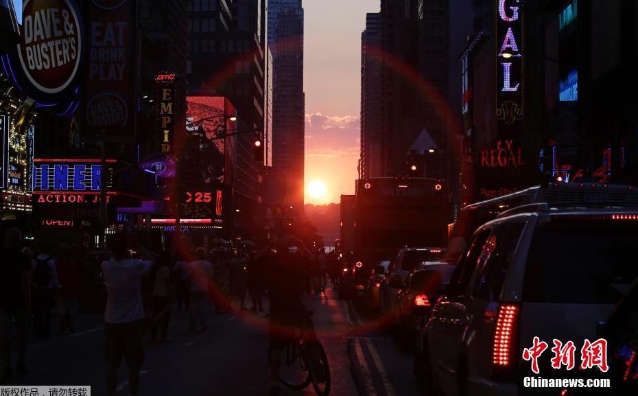 当地时间7月11日,美国纽约曼哈顿再现“曼哈顿悬日”景观,引得路人纷纷围观。据悉,曼哈顿街道大多呈棋盘布局,每年5月底和7月初各有一天日落时分,太阳会精准地落在两排摩天大楼之间,阳光洒满曼哈顿所有东西向街道,形成壮观的“曼哈顿悬日”,时间长达15分钟。